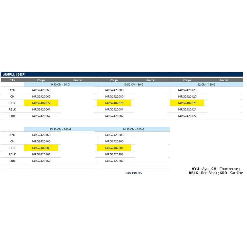 Eel Jigger is the combination of a Jig Deep Jigger with a natural rubber Anguill‘anguillon. This lure off ers a bigger bite to predators and swims, even at low speeds. Very eff ective on bars, places and cod. Holographic Finishes – 3D Eyes.