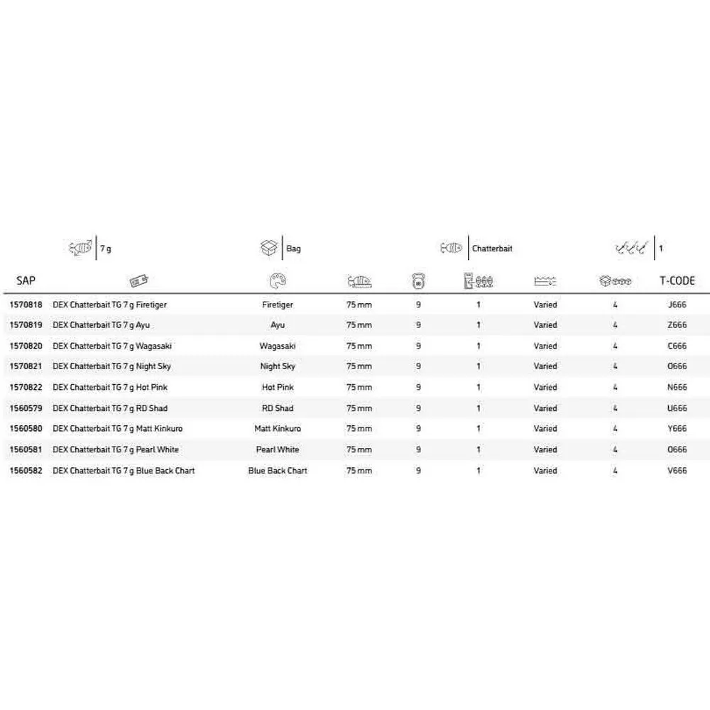 The Dex Chatterbait Is A Premium Finesse Chatterbait Made With The Most High-End Materials Available. The High-Density Tungsten Head Gives The Dex Chatterbait An Extremely Low Center Of Gravity Which Makes The Bait Very Stable In The Water. The Dex Chatterbait Features A Hand-Tied, Flexible Skirt And Has A Chemically Sharpened Hook.