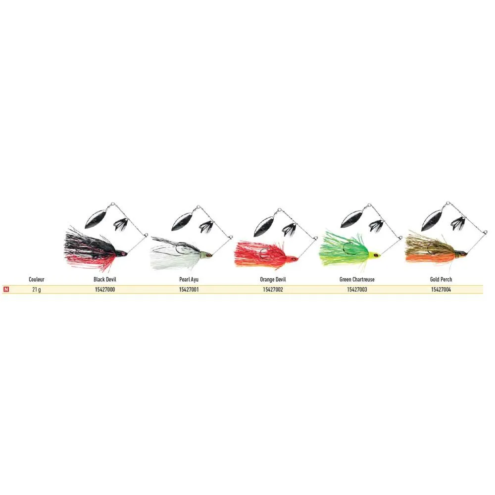 The Prorex Spinner BT DB is incredibly attractive on account of its two blades. This DB (Double Willow) model offers a willow leaf blade as well as a duckfin – which replaces the conventional Colorado blade in a classic Daiwa Duckfin shape. The reinforced hook has a long shank, allowing you to add soft plastic bait as a trailer.
