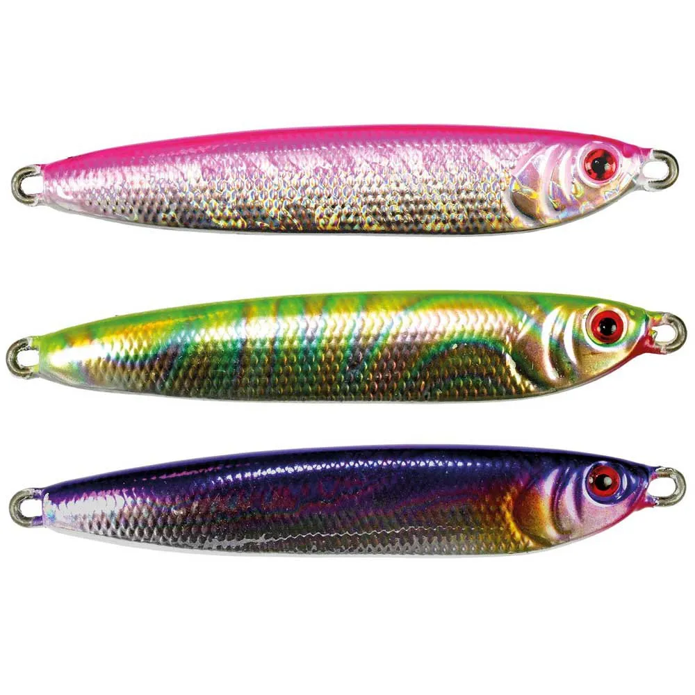 One of the most used spoons by professionals! Available from 25 to 250g, it is formidable on bars, lieus, cod… Wide and fl at profi le – Highly glittering colors and very attractive streaks that trigger the attacks even in dark waters – 3D eyes – Triple hook very resistant.