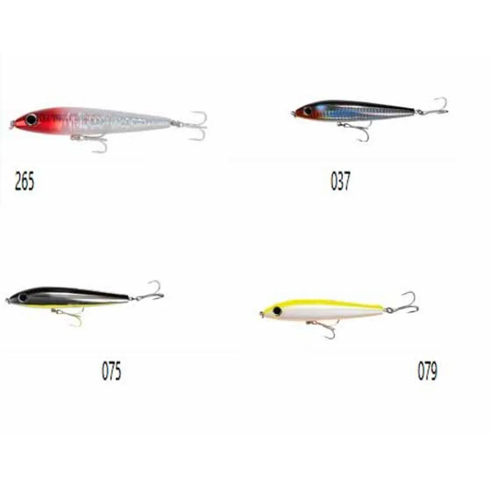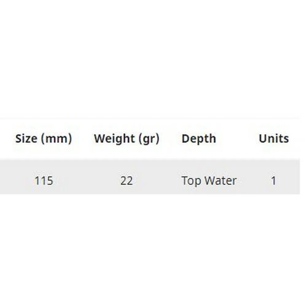Fast action walker in walking and sliding movements. It has a great cast thanks to its design and internal mobile spherical counterweights. Its position floating in the water is almost vertical, responding quickly to the jerking of the fisherman with a short and quite closed walking.