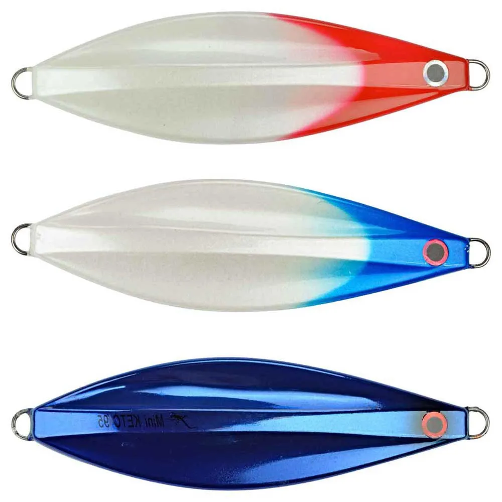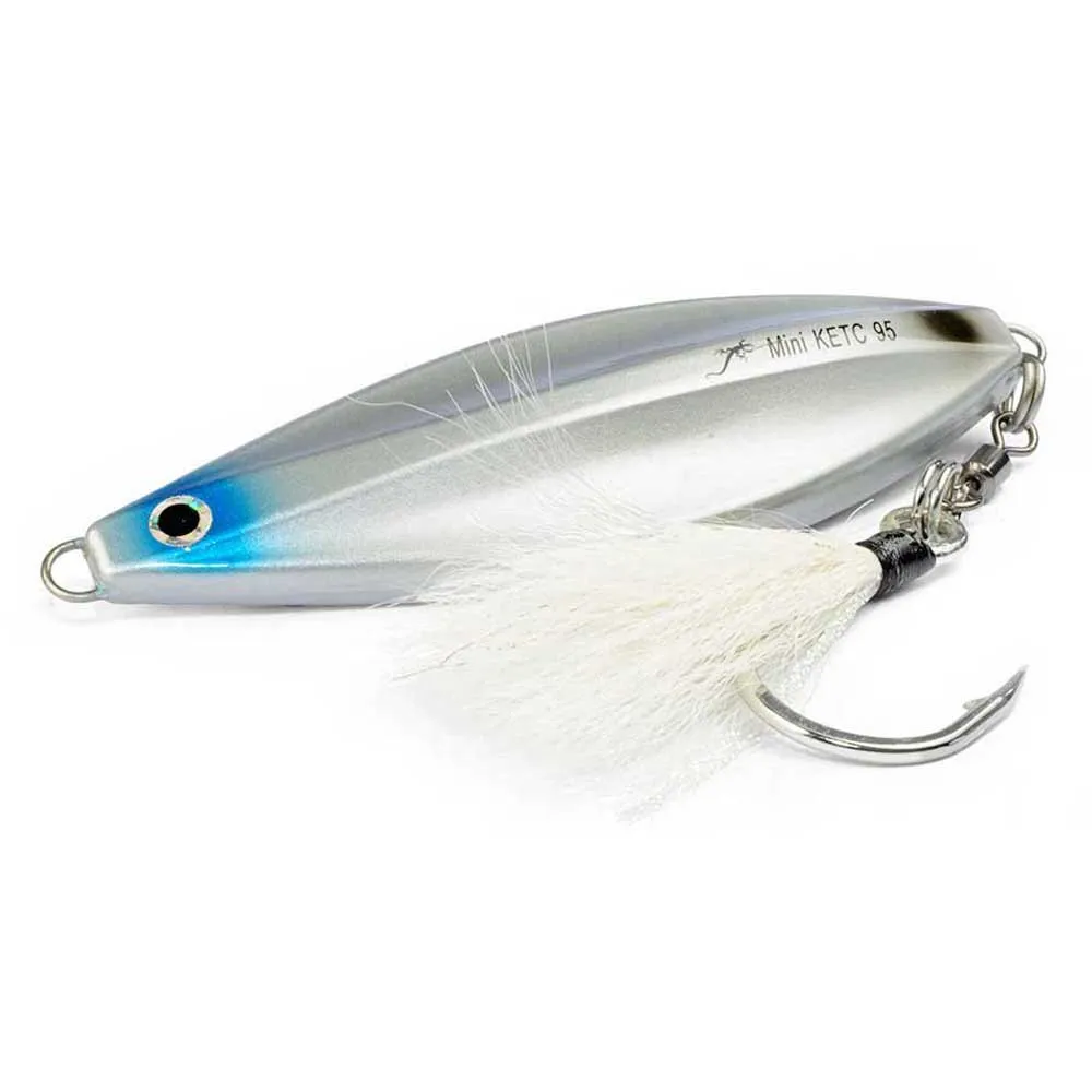Miniketc is a skipping lures directed to the most aggressive predators that hunt on the surface: bluefish, leer fish, dolphin fish, tuna species in general. recommended mainly from spring to autumn they can be casted very far in every weather condition thanks to the high specific weight and can be retrieved easily making them jumping on the water. miniketc has the great advantage that can be used with 1 oz rods and light equipment. it is armed with a split ring-swivel-split ring system, with the function of a solid assist hook, and with a single with natural hair and bright artificial threads dressed hook. very useful also as teaser in order to recall and excite the predators. the split ring – swivel – split ring system, can be replaced by a single split ring if a more disordered swimming is needed.
