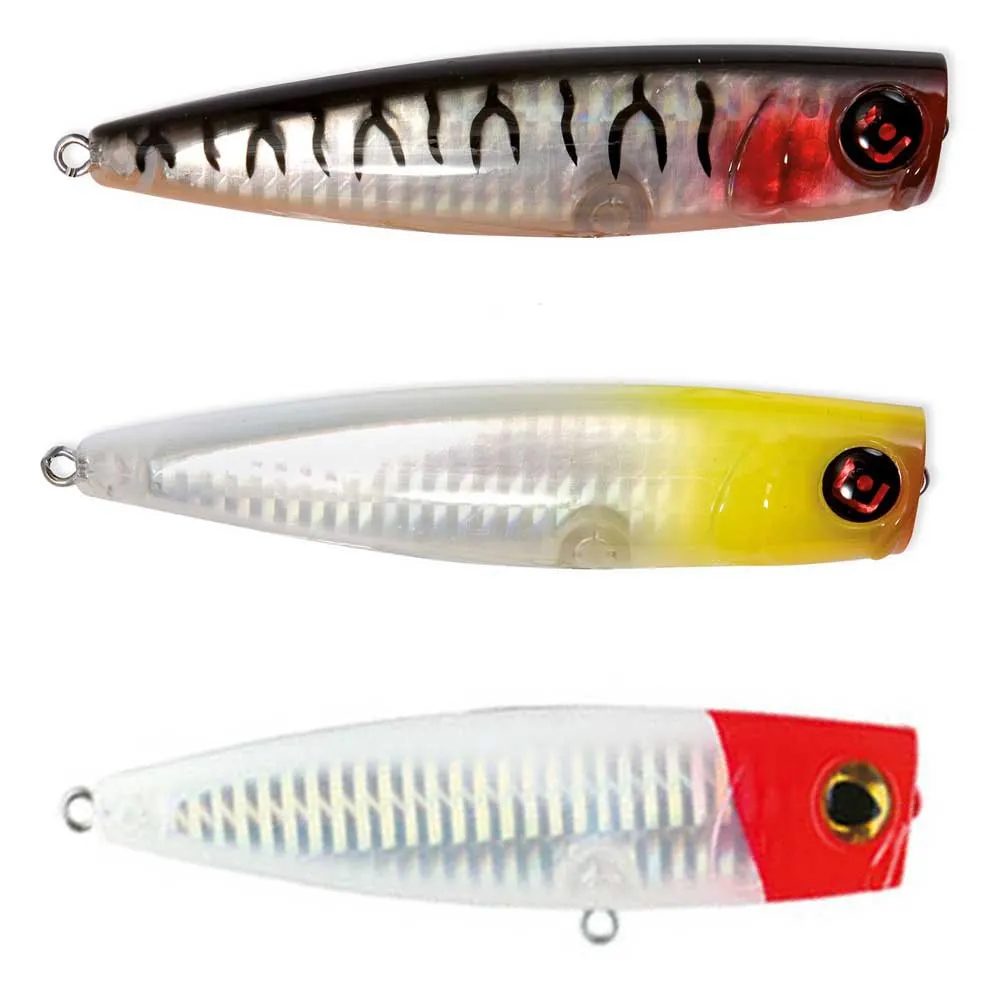 This lure has big 3D eyes and a strong gurgling and splashing action in the water created from the concave mouth. It also has an ultraviolet 3D “body inside body” construction draw veracious predators in strong salt grade contruction attract predators from long distances in top waters.