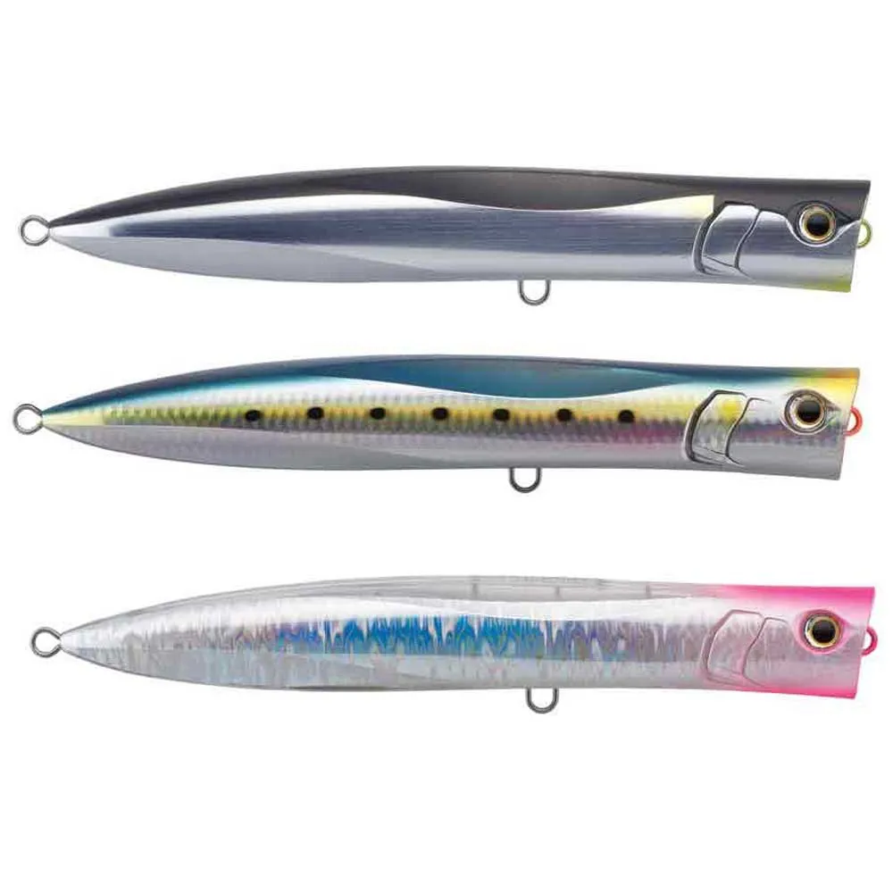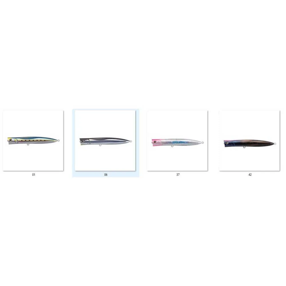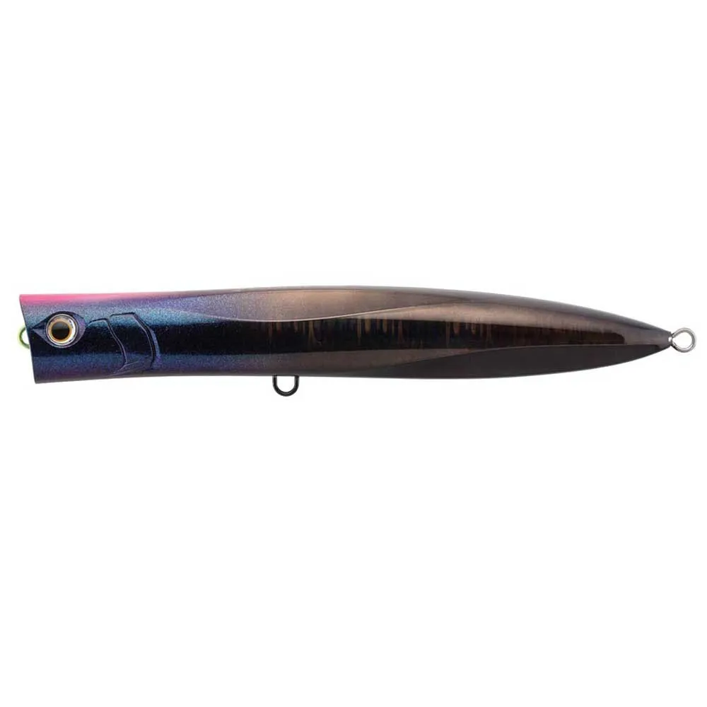 This powerful popper for fishing of large tuna and tropical species is a lethal weapon, thanks to its great capacity of Lance (it reaches 60 meters) and its resting position in the water, practically parallel to the surface, with the stern slightly more low.