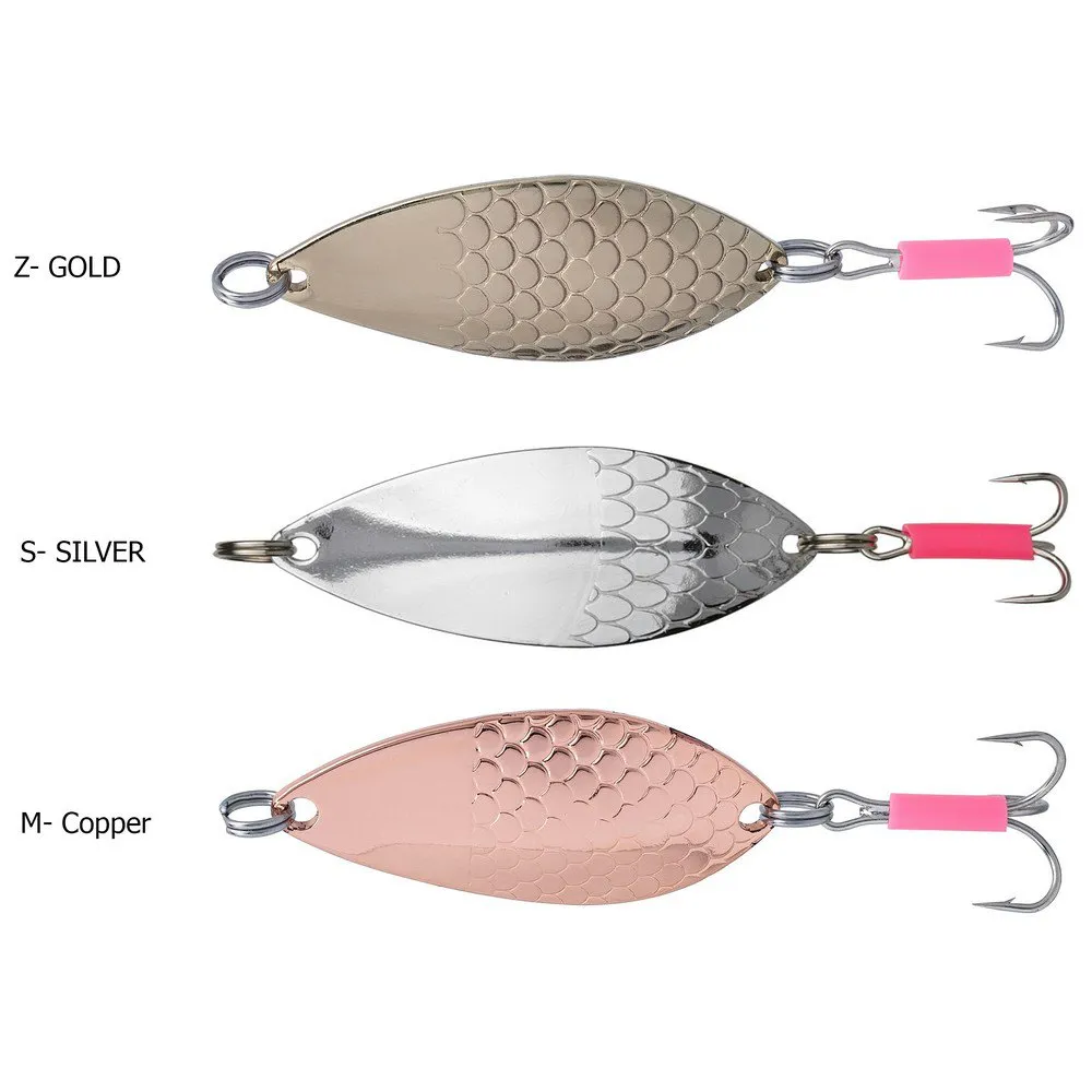 Perfect, versatile spoons available in variety of colours and shapes. Strong connector rings, sharp treble hooks and durable, electroplated coating mixed with a great scales texture are a perfect recipe for the most effective lures.