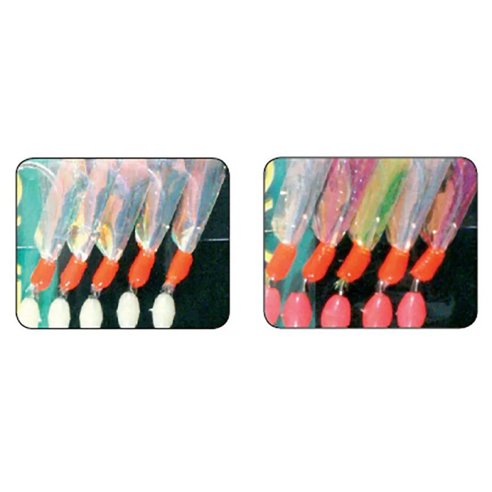 Made from iridescent fi laments and fl orets that mimic mini crustaceans, embellished with phosphorescent pearls, the Mitrafl ash® have an exceptional rendering. The models 5 H 1/0 and 5 H 2 also exist in packs of 3 Mitrafl ash®.