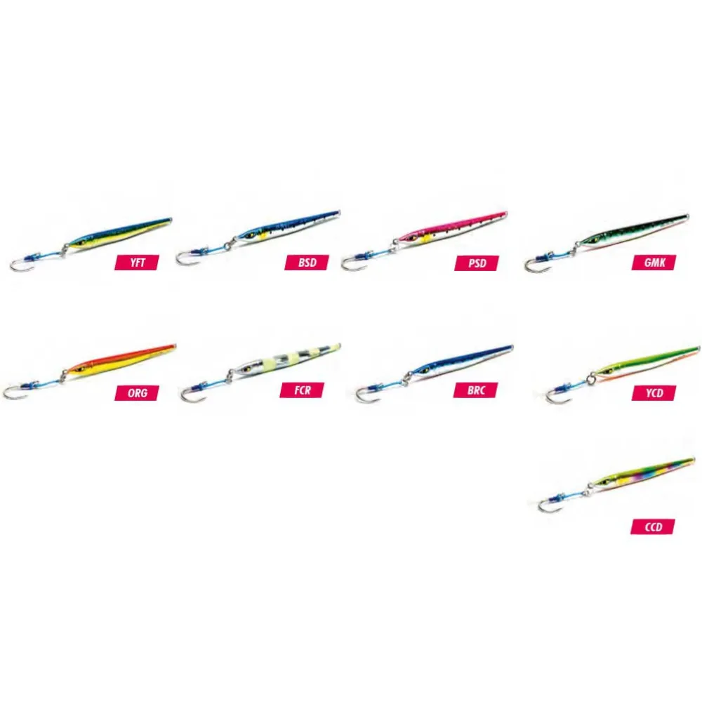 The Moonriser jig is slim profile jig with weight concentration near its head. It is a highly versatile jig that attracts different species. Due to its streamline design, it descends quickly and is great for fishing spots that hold structures, such as wrecks. It cuts through water with minimal resistance and allows the angler to jig in deeper water. Slower and longer strokes are ideal for working the Moonriser and this less intense technique allows anglers to continuously jig for a longer duration, increasing the chance of a strike.