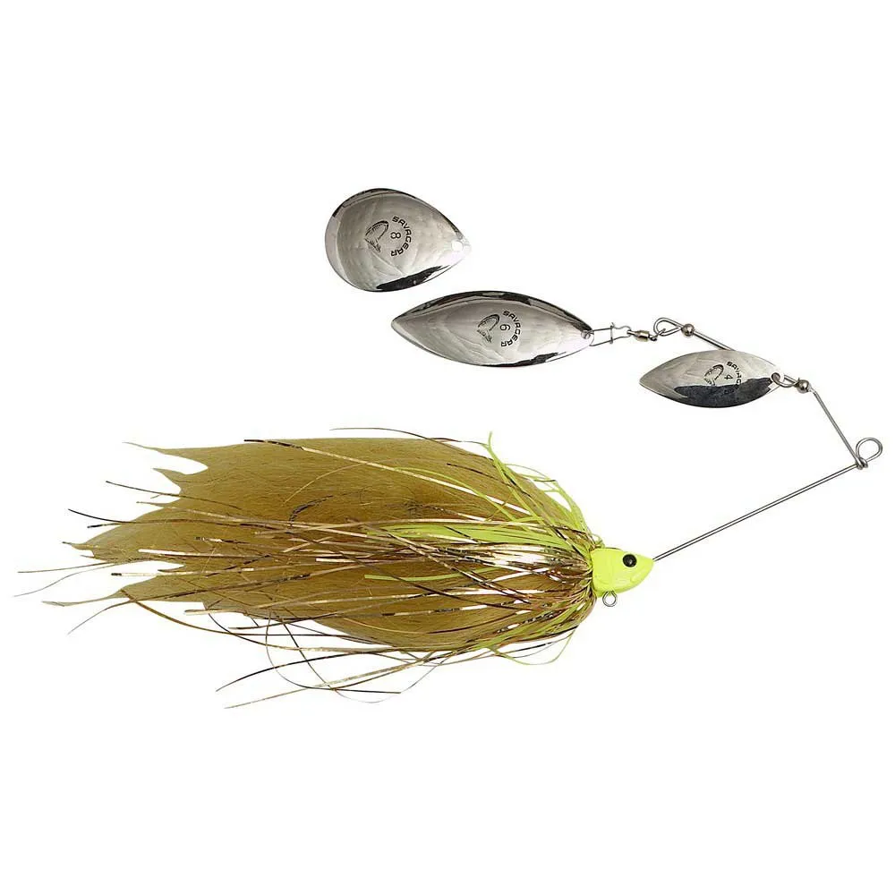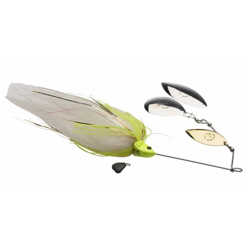 Mega sized spinner bait, with an extra large and long main frame, for superb action and hook up rate.