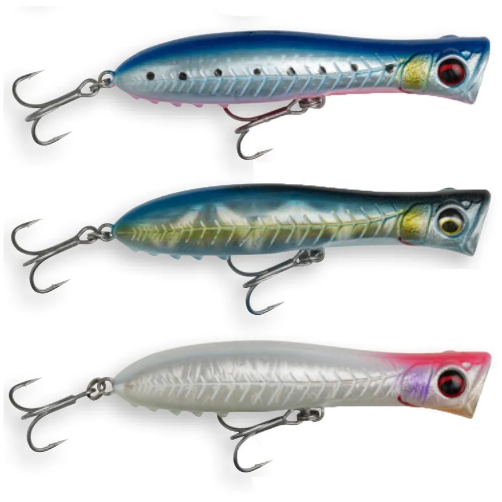 With rock-solid build quality, Thru Wire construction and an ultra-long casting design, the Gravity Popper is made to match the needs of monster saltwater fishing. An innovative Hydro Lock Ribbing system minimises the chances of the leader snagging on a rear hook (a common problem with poppers) while at the same time produces extra bubbles. The dimpled structure of the popping area also helps to create more bubbles by trapping air โ this results in a different frequency popping sound that is sure to grab the attention of hungry predators.