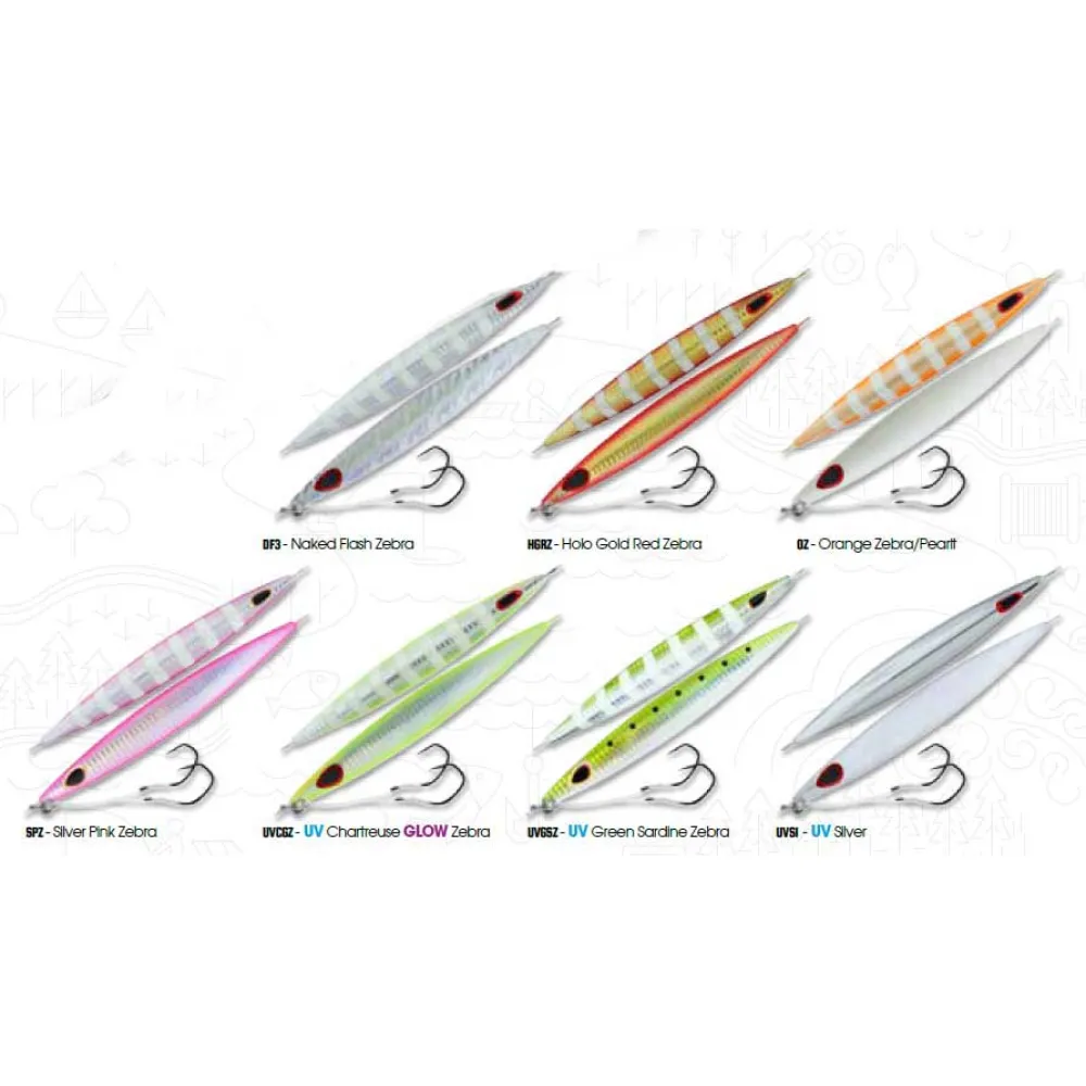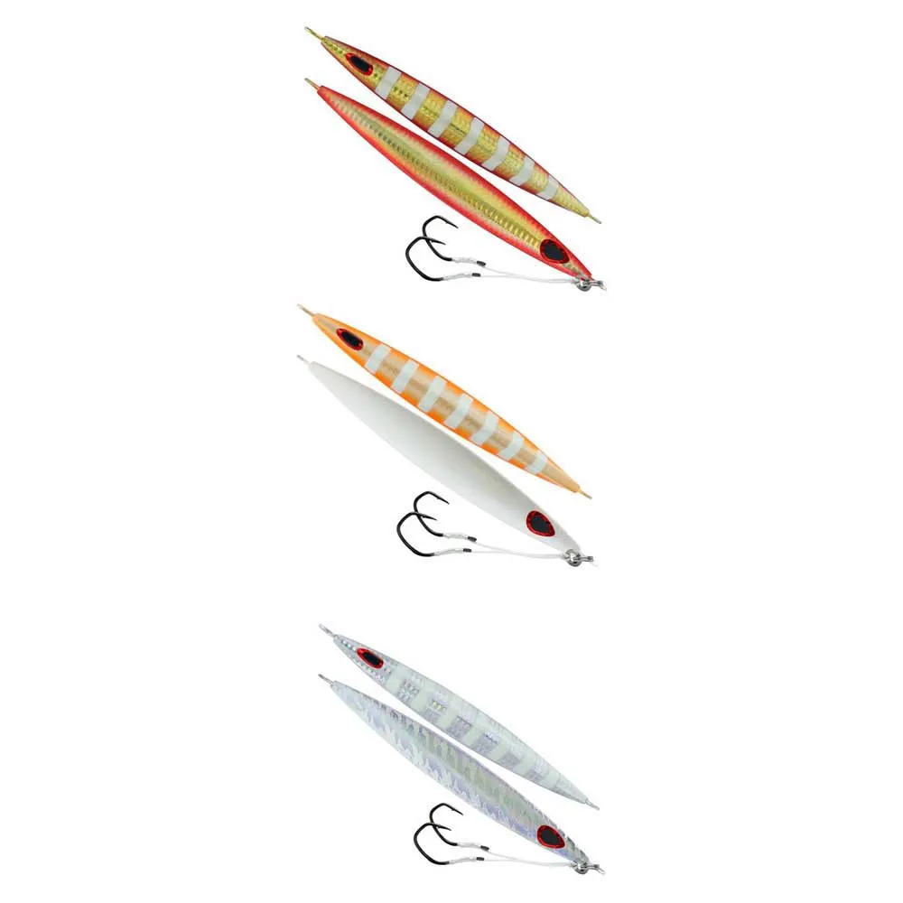 The Gomoku Kensaki with its flawless knife-tip design and asymmetrical shape has been designed to cut through the water and get down deep like no other micro jig. Keeping the jig stable during its descent are the inline eyelets that enhance the fluttering action under a slack line.