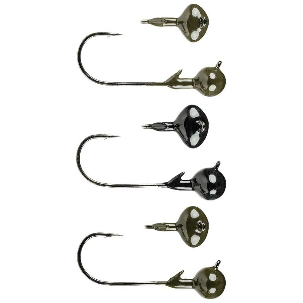 The Strike King® Tour Grade Football Jig Head features a football-shaped head, a special barb that helps baits stand up with no need for special glue, a 60-degree flat eye Gamakatsu® hook for better hook sets, and powder-coated paint schemes. Great in cover. Designed for shakey style fishing but also great for regular jig head methods.