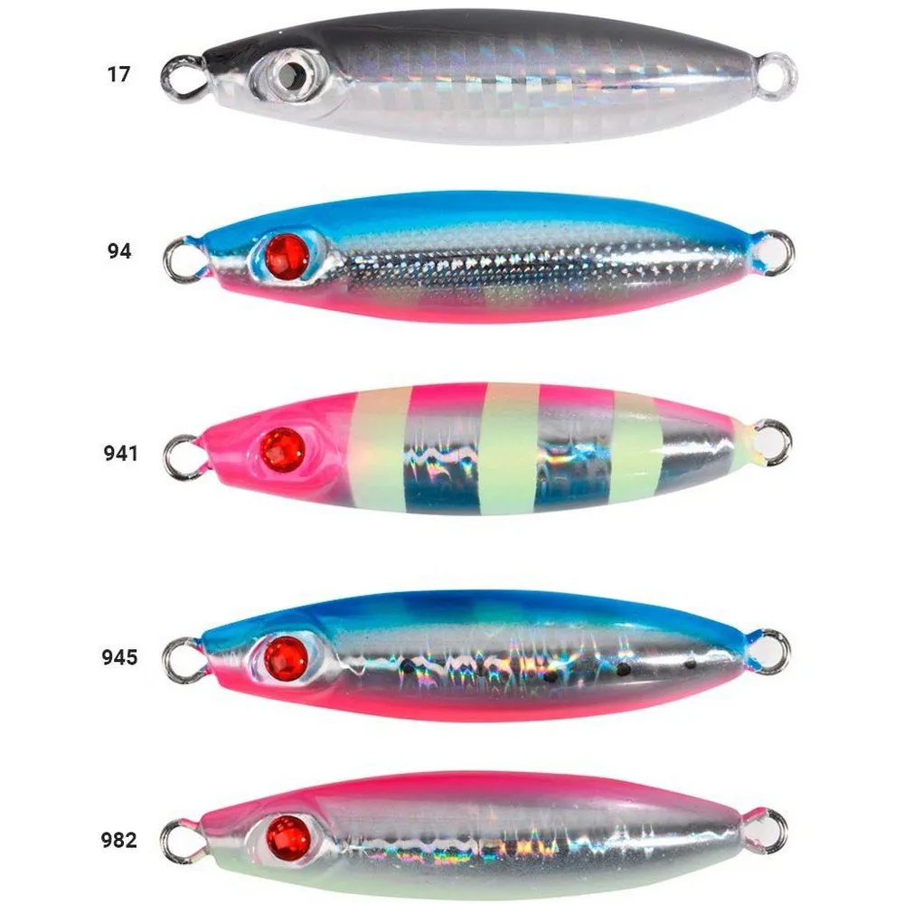 Round-bodied, asymmetrical jig-cast rigged with a double assist hook in the front. Its colors and reflections make it perfect for attracting sea predators in drop shot fishing or casting.