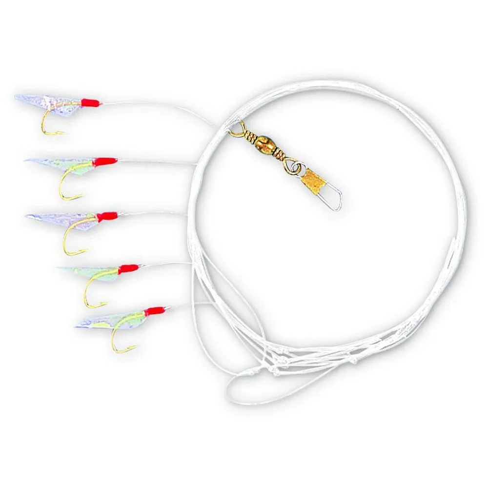 The 5 flies made from real fish skin are each tied to the size 6 gold hook